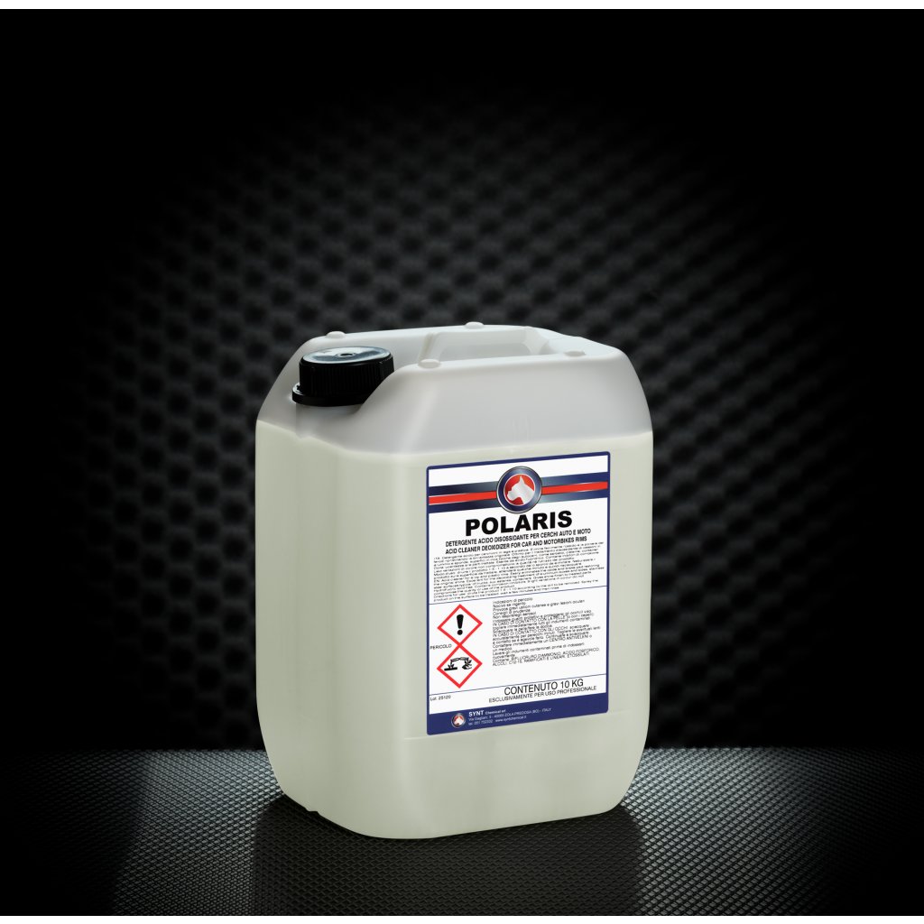 Detergente acido per cerchioni in lega e plastica. Ottimo per il trattamento disossidante di cassoni in alluminio e sponde, superfici in inox tipiche degli autocarri, come serbatoi, cisterne, container.